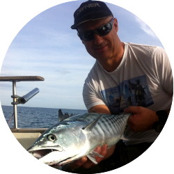Excursiones de pesca con barco de alquiler a motor, por todo el litoral barcelonés acompañados de una profesional y motivado staff de pesca deportiva, formado por : Un guía de pesca y el patrón portuario y profesional : skipper Inad – Dani Marín