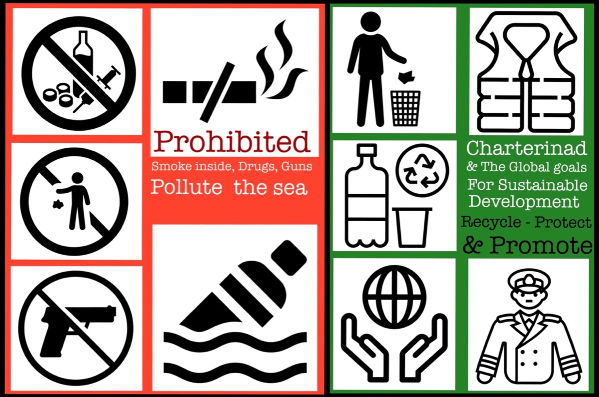 - Means: Reducing plastics on board Using renewable energies: Solar panels